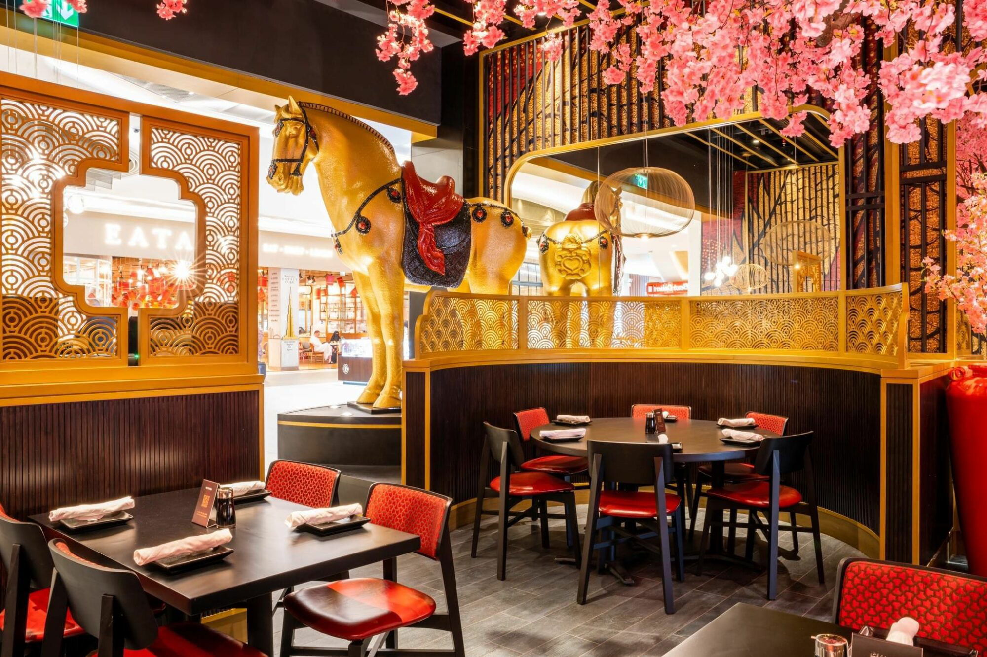 The brand’s signature horses have received a fresh treatment, sitting proud at both entrances and symbolizing strength and power, which is representative of the bold, powerful flavors of Asia featured throughout the menu.
